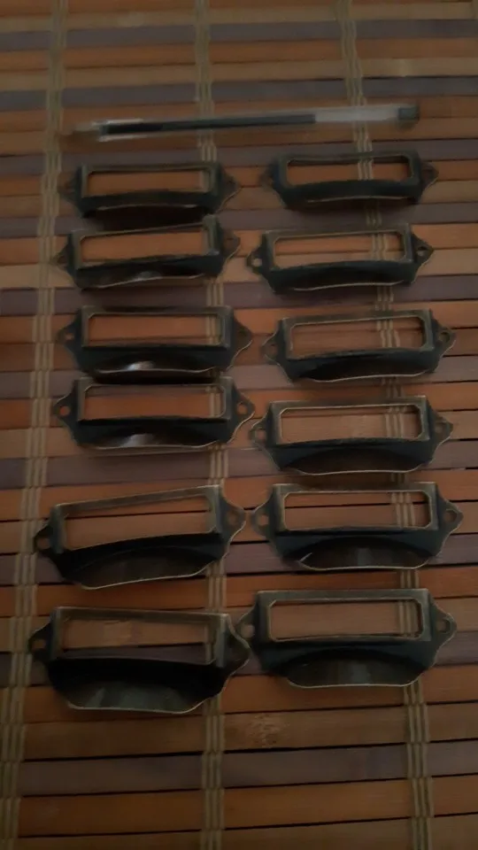 6pcs Antique Brass Vintage Silvery Metal Label Pull Frame Handle File Name Card Holder For Furniture Cabinet Drawer Box Case Bin