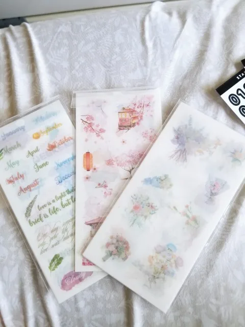 Washi stickers. Really beautiful. Only downside is you have to cut them yourself. But stickers are quite big so it should be ok for cutting.