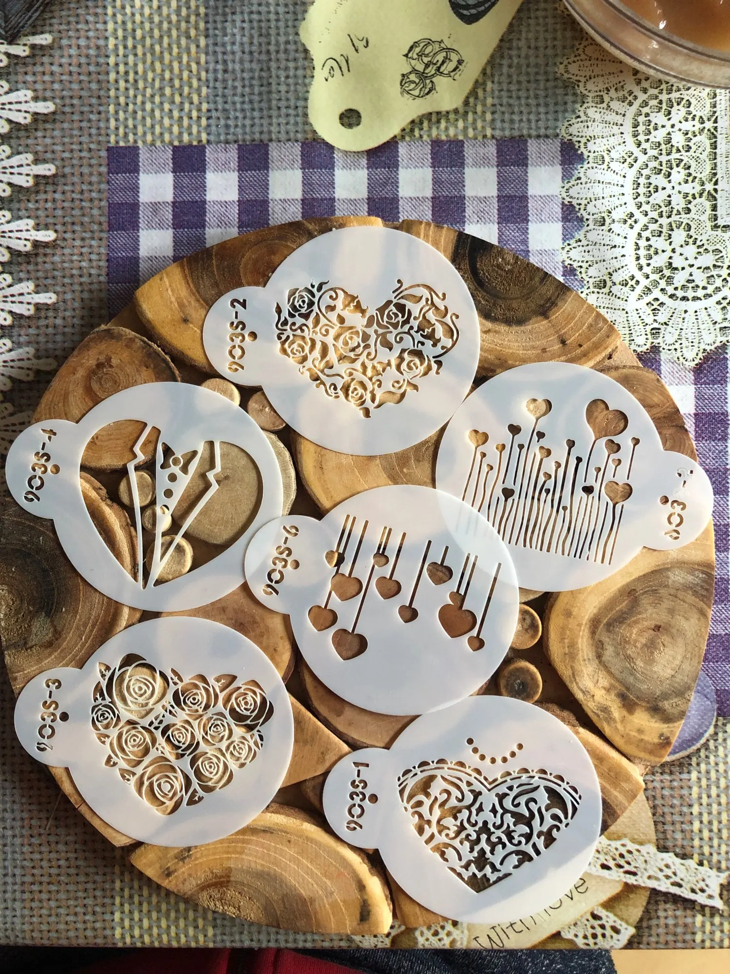 6pcs/set Hearts Cookie Stencil Fondant Cake Mold Rose Flower Biscuits Baking Mould Cake Border Decorating Pastry Spray Tool