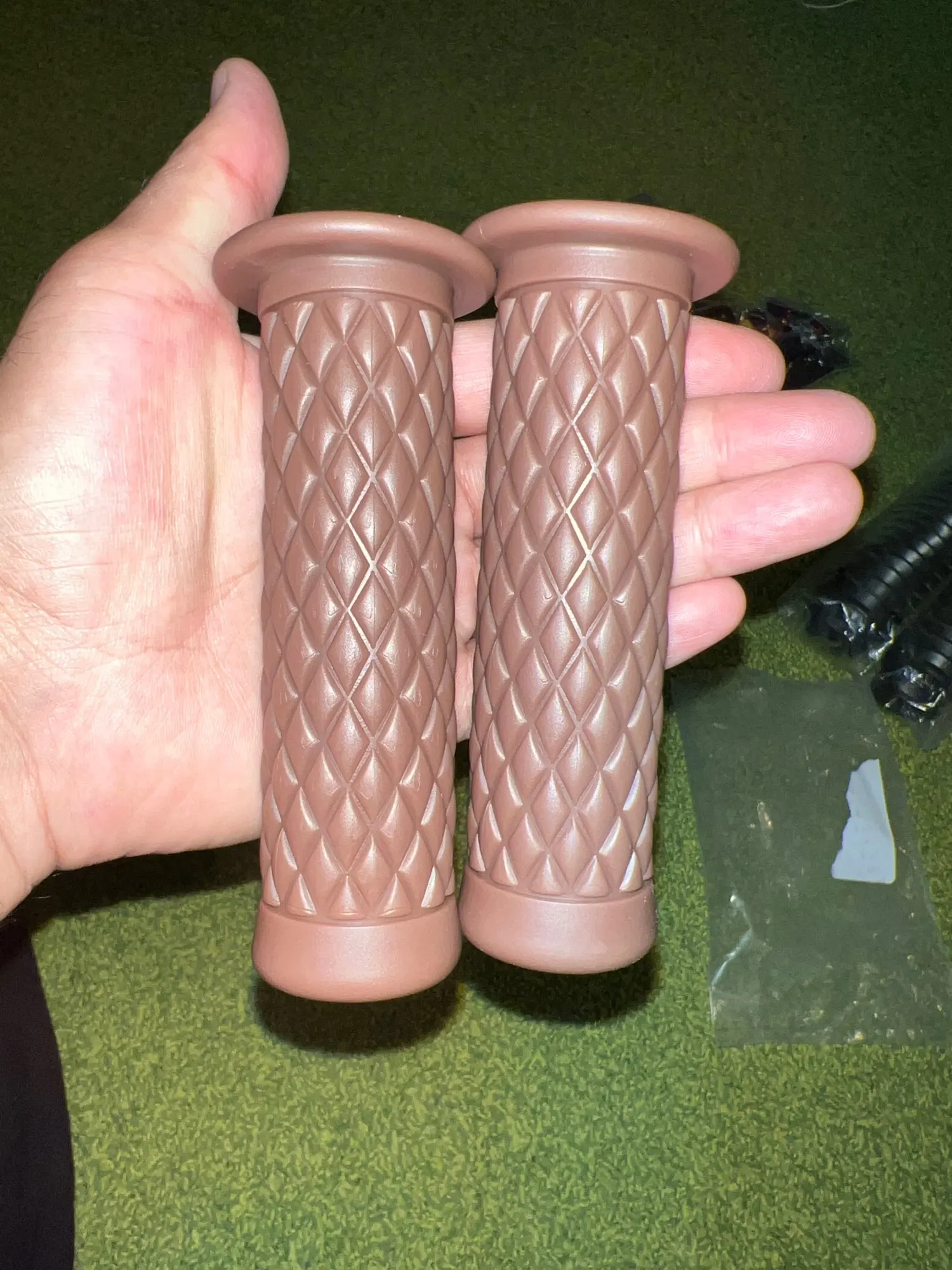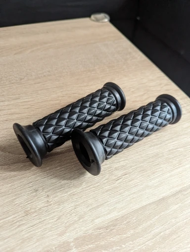 Good grips. I've buyed them for my Triumph Scrambler but they are a little too short for it on the gas throtle. I will use them on my Vespa 150 Sprint where I tried them briefly and they seem to have the perfect size. The only issue is the grips took 2 whole months to arrive.