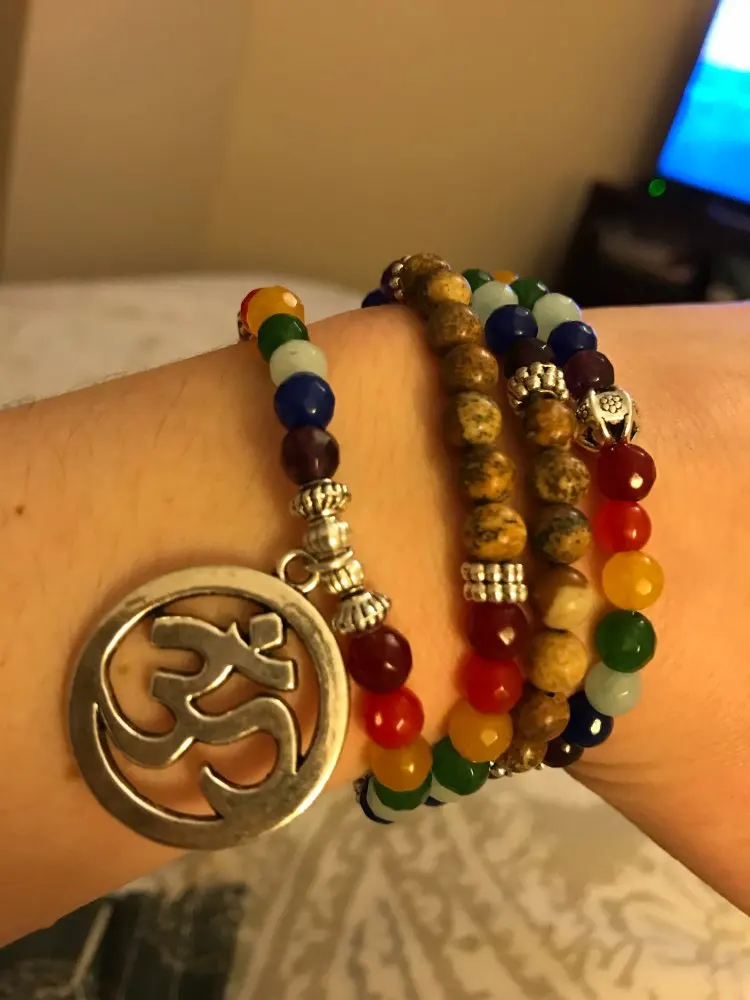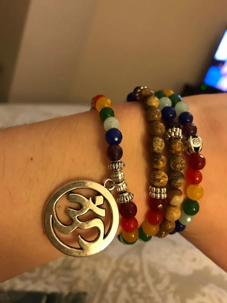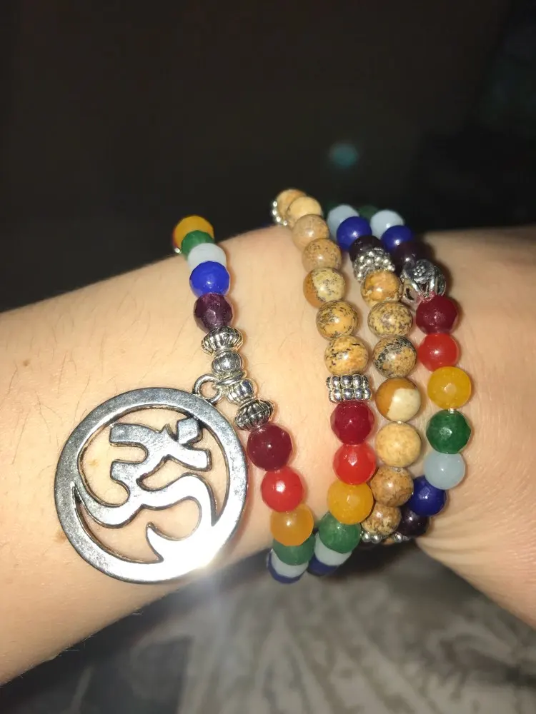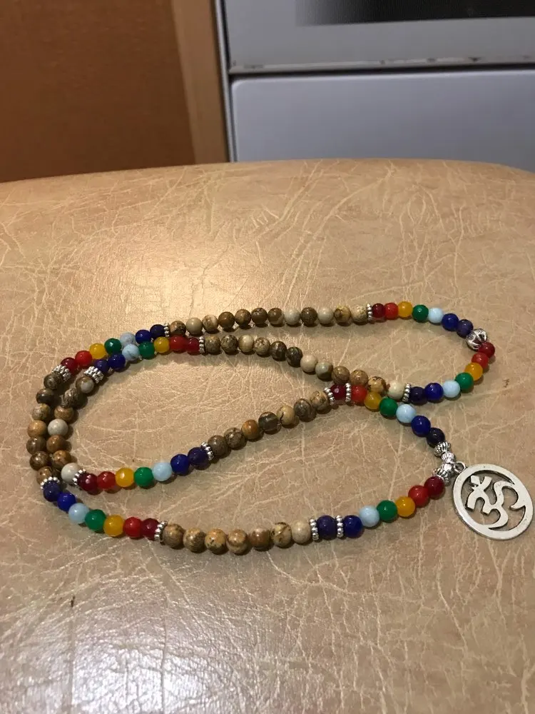 7 Chakra Healing Balance Bracelet Picture Stone Gem Yoga Reiki Prayer Stone Charms 108 Bead Bracelet Multilayer Bangle Women Men