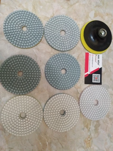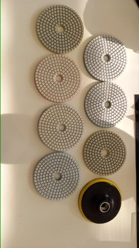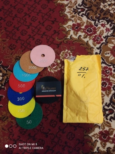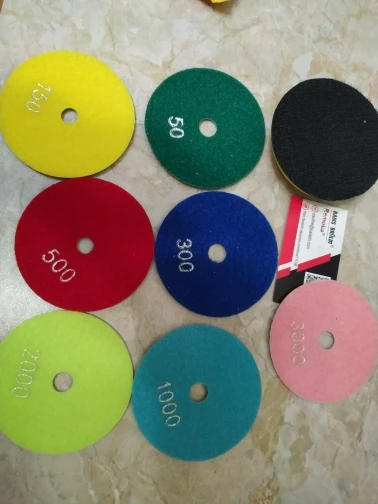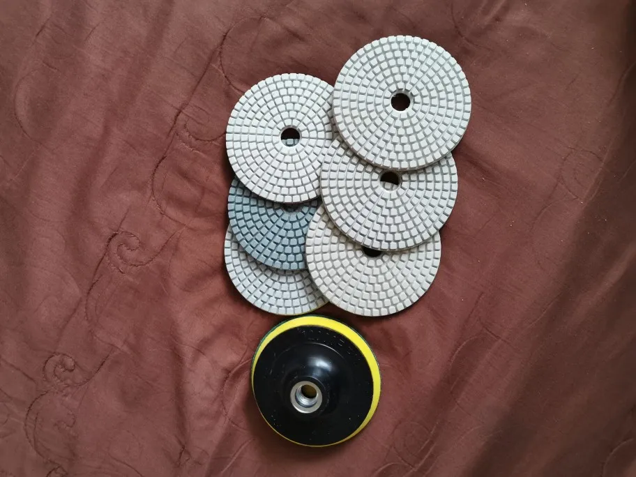 These are typical economy level pads and backer. Pads look good and all have uniform center holes, but the backer pad has no hole and will need to be drilled out to allow water from the wet grinder through. Fast shipping - delivered 14 days from purchase.