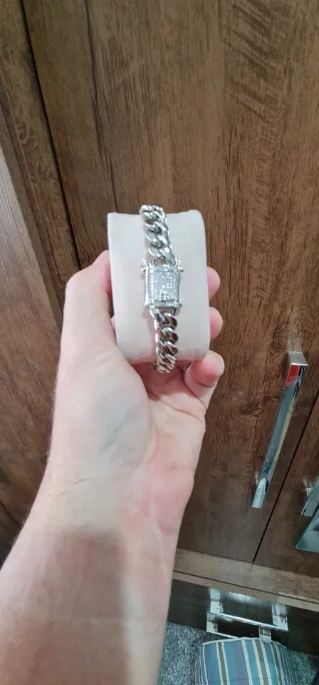 8/10/12/16/18mm CZ Zircon Stone Paved Stainless Steel Cuban Curb Miami Chain Link Bracelets for Male Boys Hip Hop Rock Jewelry