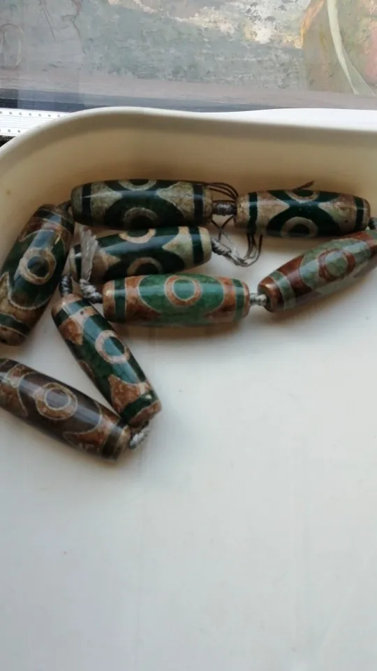 8pcs,Length Around 40mm Ancient Tibet Dzi Agates Oval Beads , Large Variety of Patterns , Jewelry Making Beads