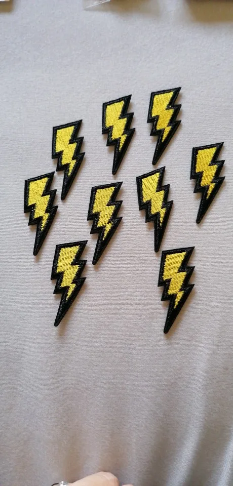 9 pcs / lot fashion Patches Stickers yellow lightning DIY patch Fabric Appliques Embroidered Iron On clothes Badge Embroidery