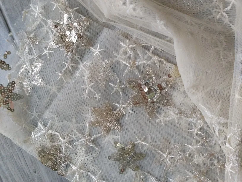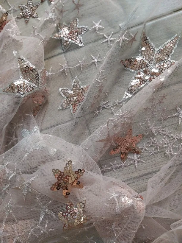 91cm*130cm Sequins Lace Fabric Shining Star Tulle Mesh Material Fabric For Bridal Gown Dress Clothing Curtain Accessories