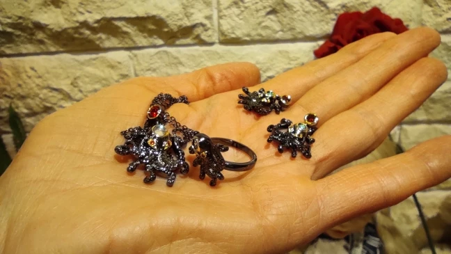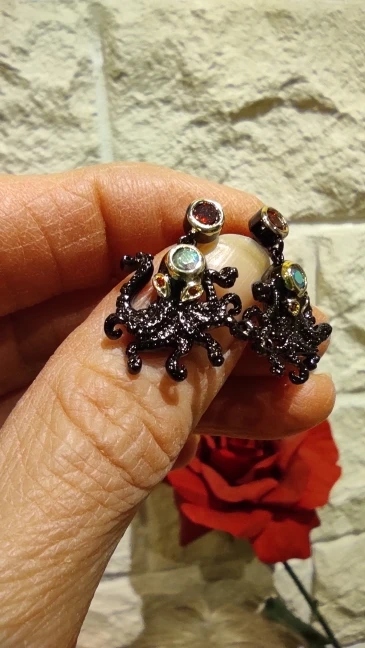 925 Silver Fashion Novel Ladies Jewelry Animal Earrings Octopus Black Gold Red Zircon Earrings Party Jewelry High Jewelry
