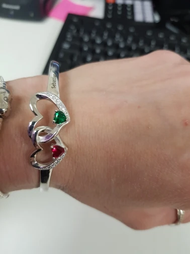 925 Sterling Silver Heart Bracelet for Women Personalized Name Bracelets & Bangles with Birthstone Wedding Gift (Lam Hub Fong)