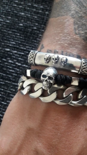 925 Sterling Silver Skull Bracelets Bangles Hand Braided Adjustable Rope Bracelet Skeleton Charm Bracelet Men Jewelry