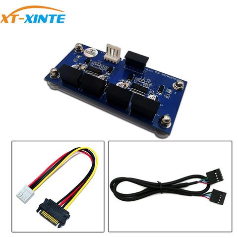 9pin USB Header Male 1 to 4 Male Extension Cable Card USB 2.0 HUB 9 pin Connector Adapter + SATA Power Magnetic Base for Desktop