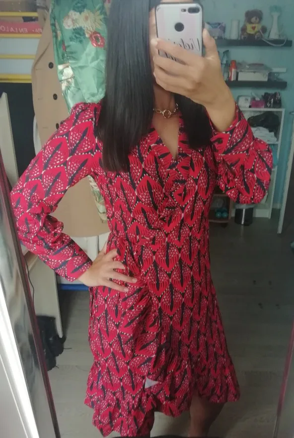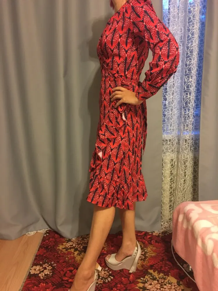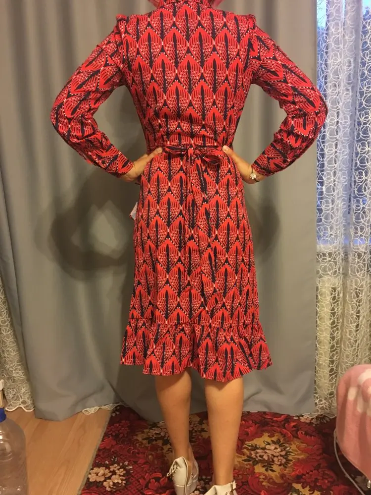 Aachoae 2022 Women Print Ruffle Dress Spring Lantern Long Sleeve V Neck Midi Dresses Causal Sashes Ladies Irregular Hem Dress