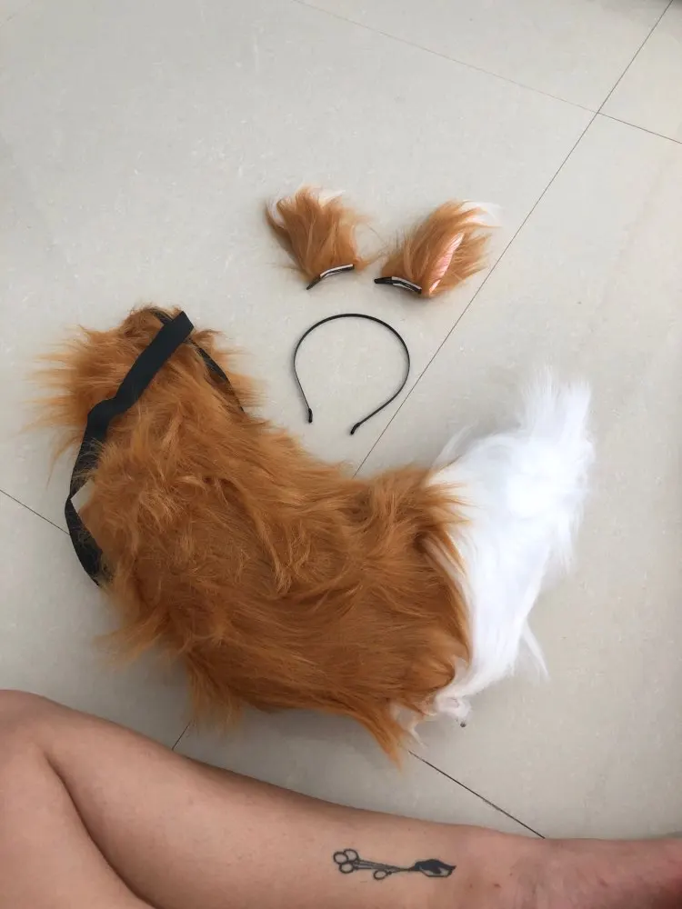 Adjustable Belt Party Fur Animal Tail Furry Wolf Fox Ear Headband Anime Cosplay Carnival Halloween Costume for Women Christmas