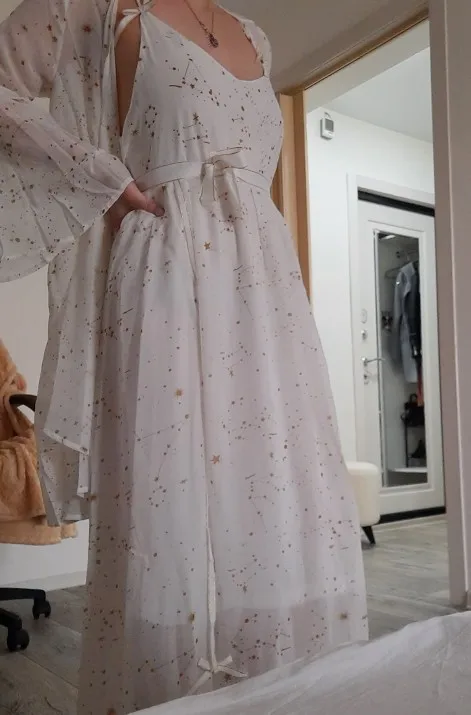 My only problem is that the cover is a bit short and tight on my shoulders. I wear a large and ordered XL the dress fits perfectly. the cover feels cheap but is cute. the dress is good quality. I did receive it late but only by 2 day so it's fine. I am very happy with the product!