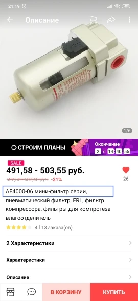 AF3000-03 Mini Series Filter, pneumatic filter, FRL, compressor filter, filters for comprossor