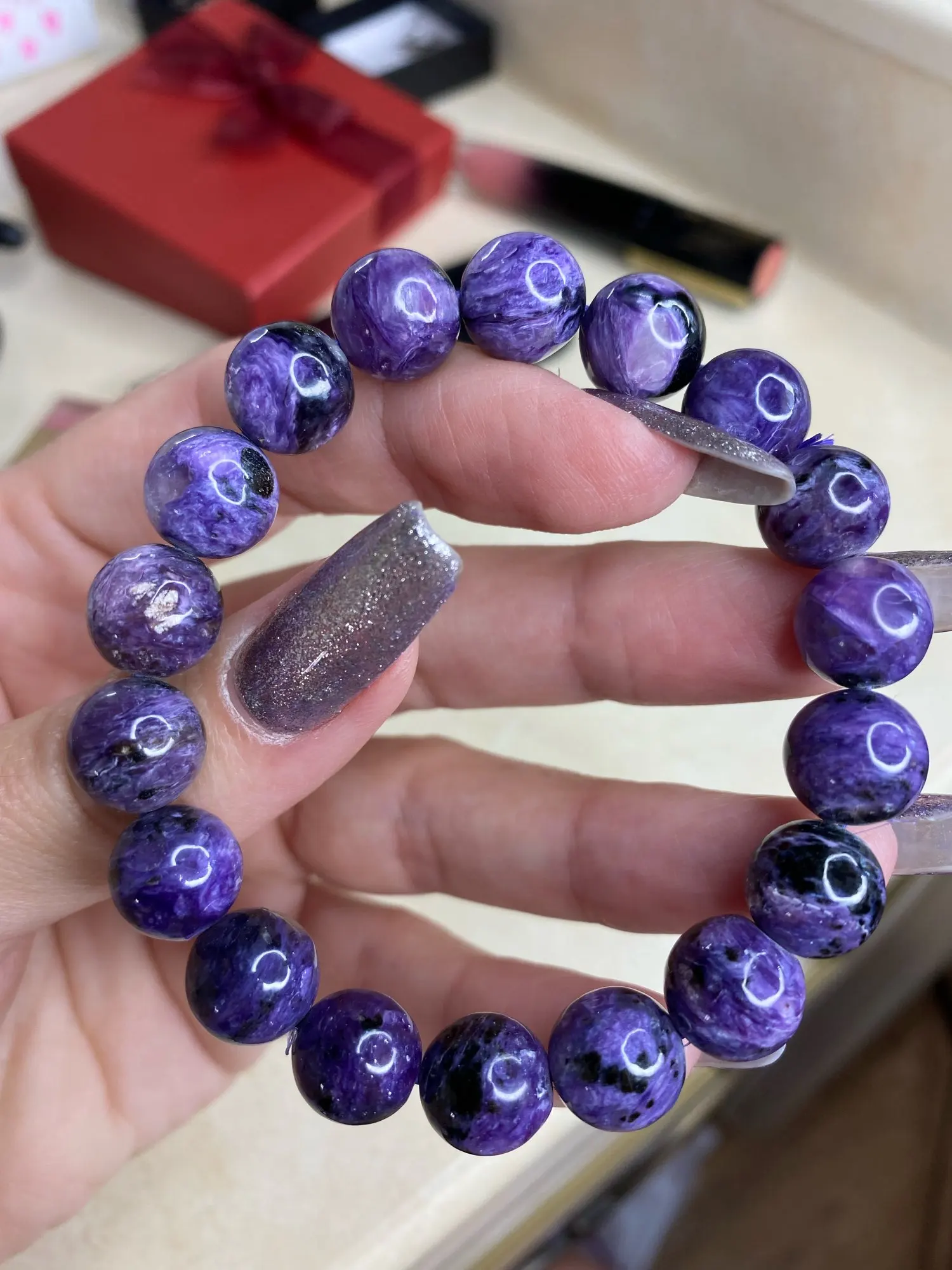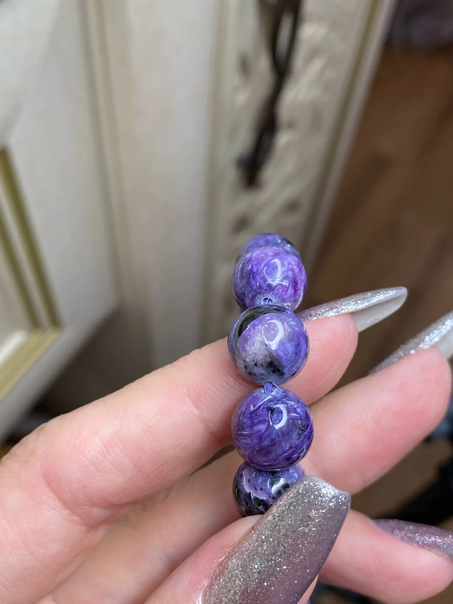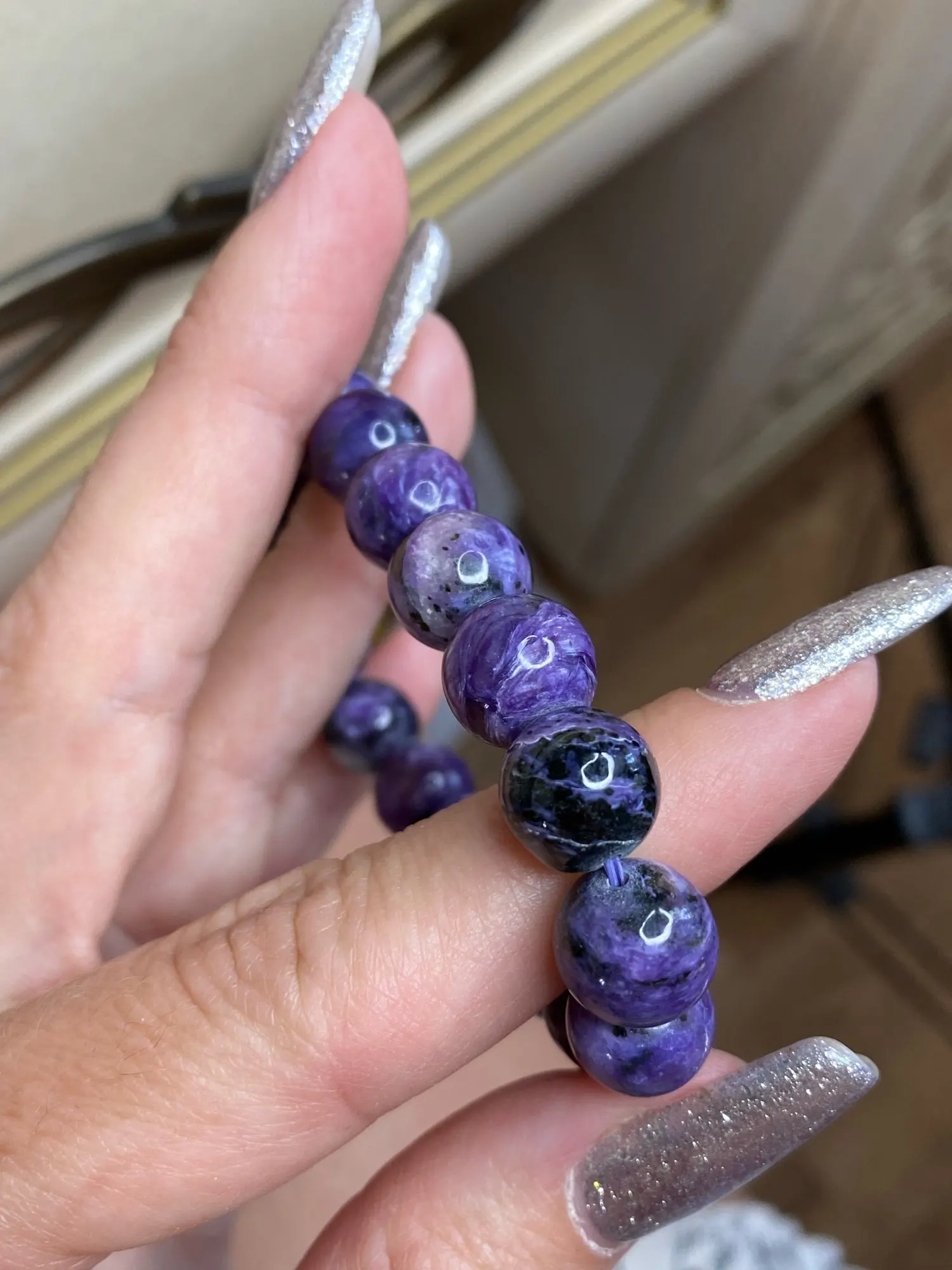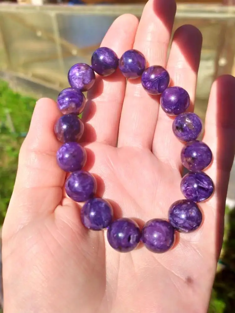 AKAC approx11mm semi precious natural charoite bracelet smooth round loose beads