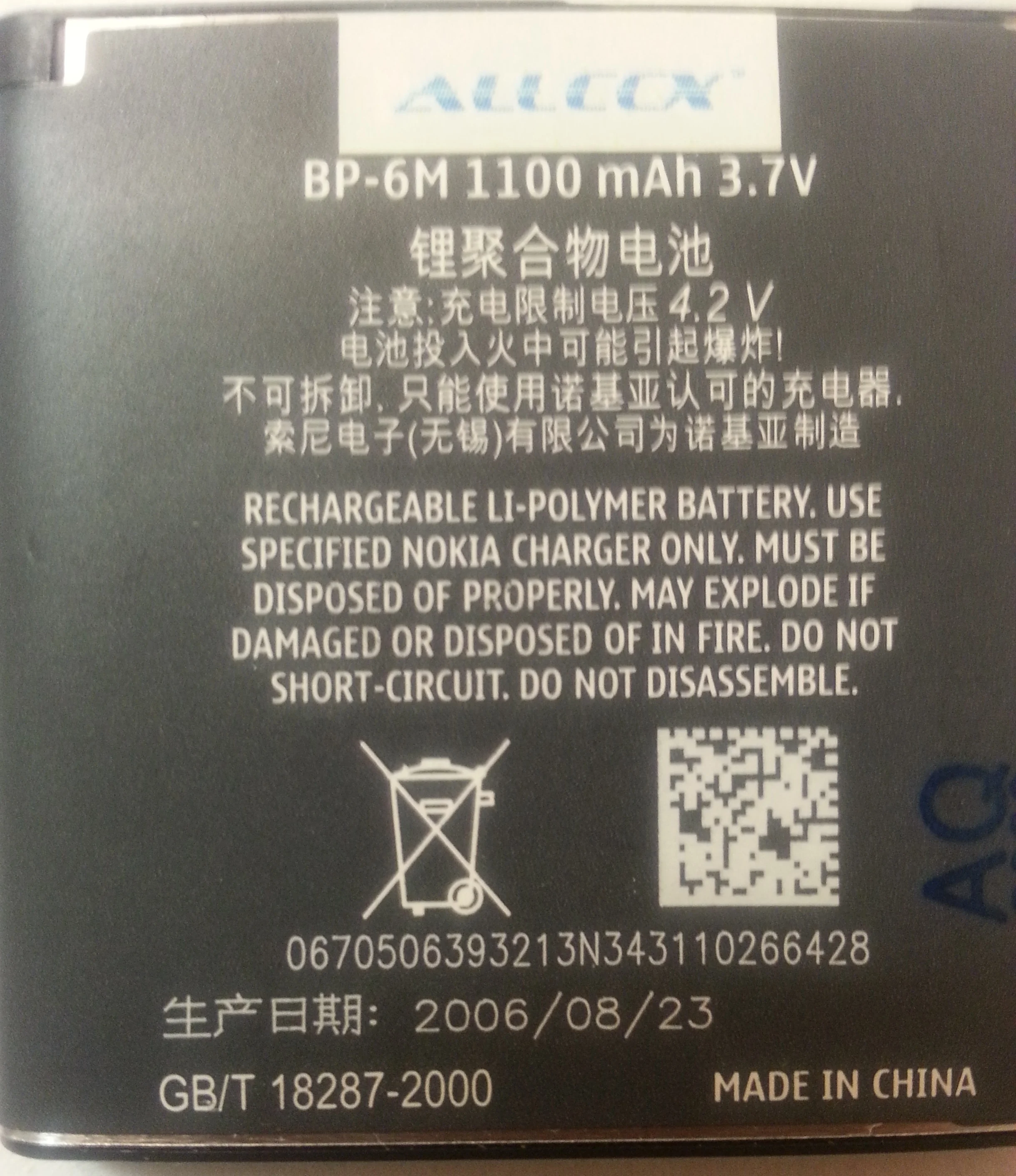 ALLCCX battery BP-6M for Nokia 3250 6151 6233 6234 6280 6288 9300 9300i N73 N77 N93 N93S