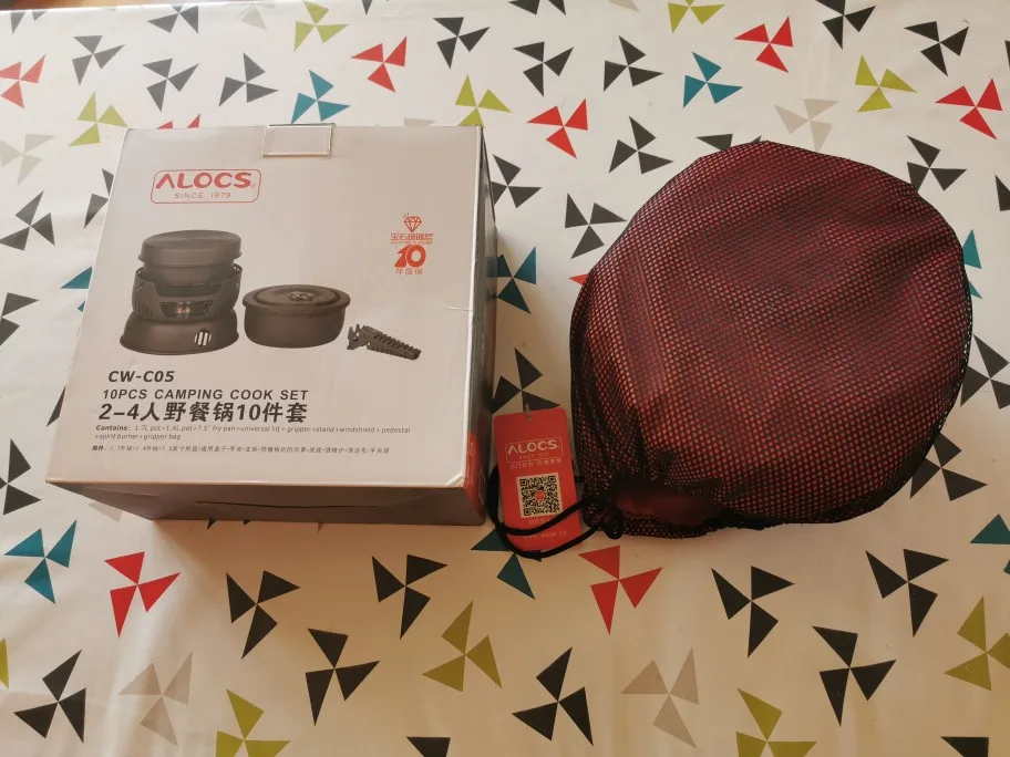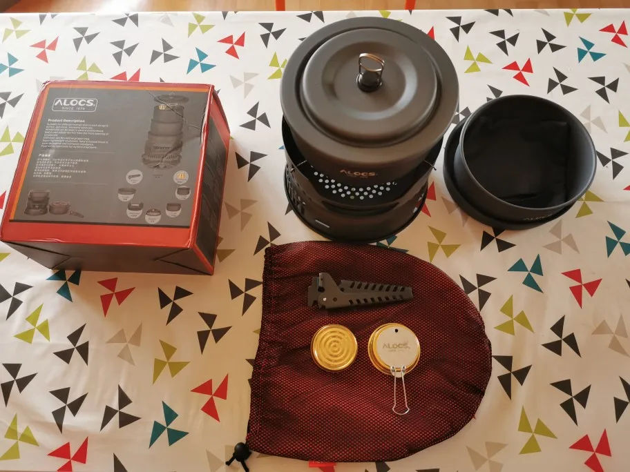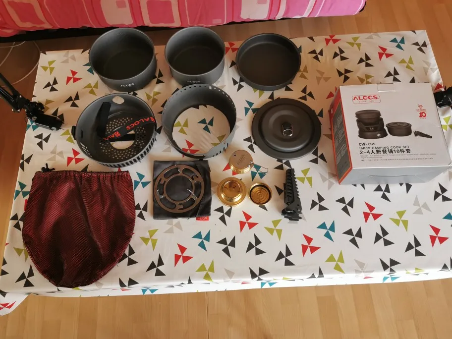 ALOCS 2-4 Person Outdoor Cookware Camping Alcohol Stove Cook Set for Camping Hiking Picnic Stove with Gripper Pot
