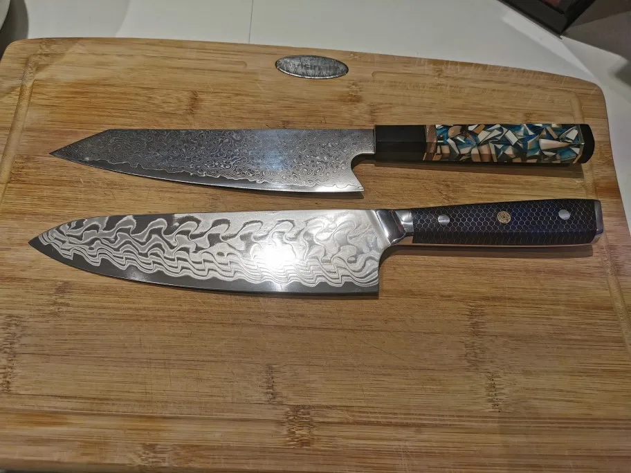 AMBER AUS10V Core Croco Pattern Knife With 2 Tones Blue Honey Comb Resin Chef Cleaver Kiritsuke Nakiri Santoku Ultral Sharp Cook