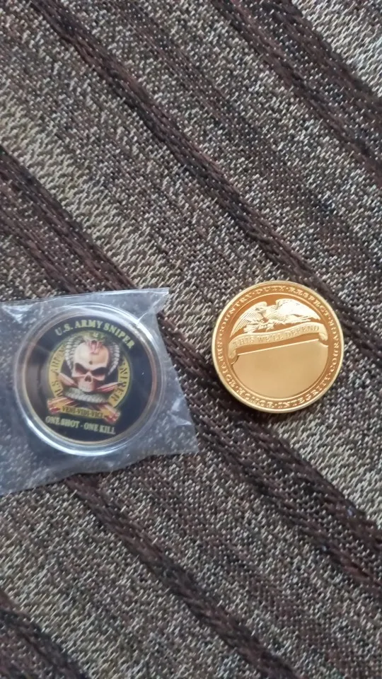 American Souvenir Gold Plated Coin Original US Army Sniper One Shoot One Kill American Eagle Military Challenge Coin