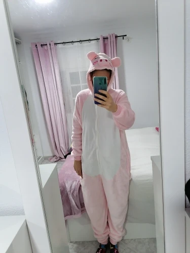 Animal Kigurumis Onesies Sleepwear for Adult Cartoon Pink Pig Women Pajama Winter Homewear Jumpsuit Pajama Suit Woman Rompers