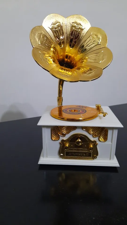 Antique Wooden Music Box Metal Phonograph Hand Crank Music Boxes Creative Classic Music Box Home Decor Christmas Birthday Gift