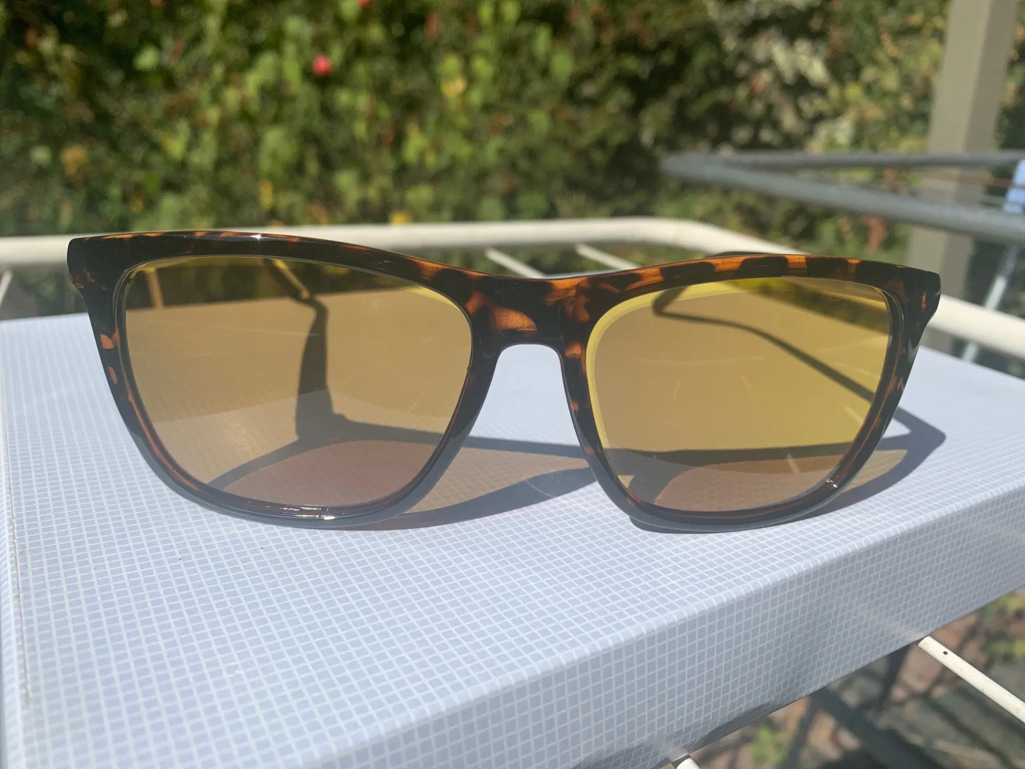 It's light wearing the glasses. The sunglasses feel a little bit fragile and the glasses are plastic and very thin. But it wears perfect and it's a nice sunglasses to see.