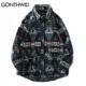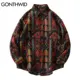 Aolamegs Patchwork Color Retro Geometric Pattern Men Shirt Thick Casual Baggy Big Pockets Harajuku High Street Autumn Streetwear