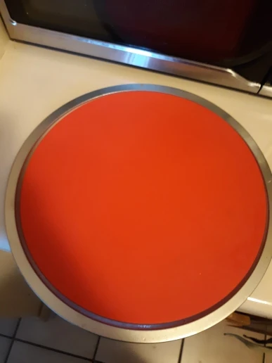 Works perfectly! Put it on my enamel turntable plate in the oven and placed my round oven rack on top of it (with legs with rubber endings) and I use it to catch crumbs. Works great!