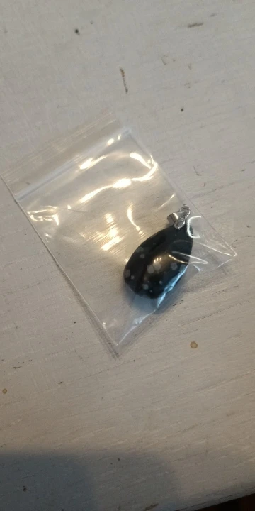 Might be a bit smaller than you'd expect based on the pictures, but it's really cute. Looks plastic, but I know nothing about stones so I'm not sure it's not natural. All I know how it catches the light and that's why I bought it, awesome purchase.