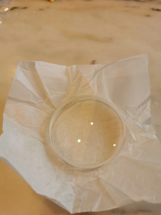 The glue that holds both halves together appears to still be tacky around the seam.I'm guessing that's normal? Seems perfectly fine otherwise, although I haven't checked its optical properties yet.