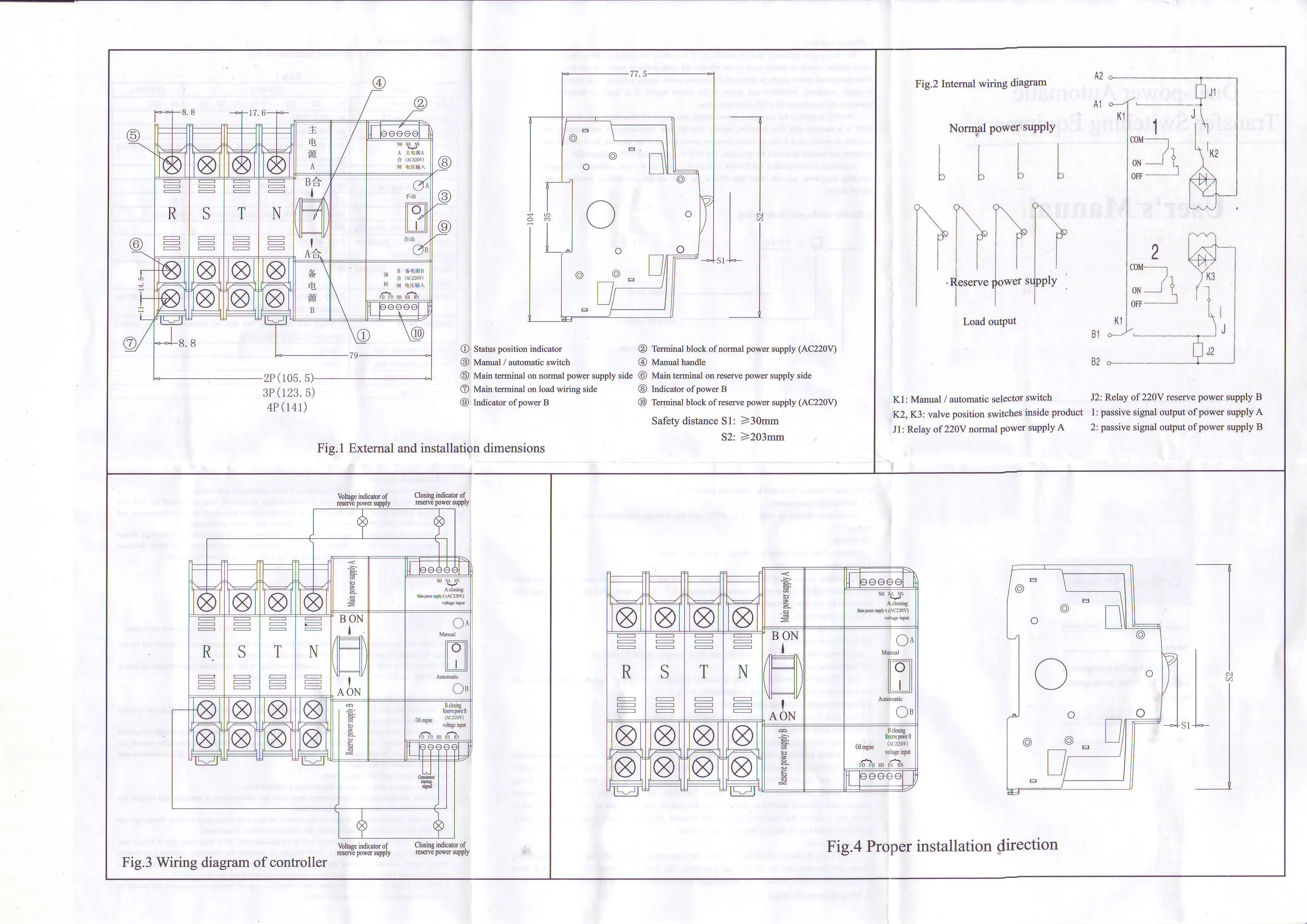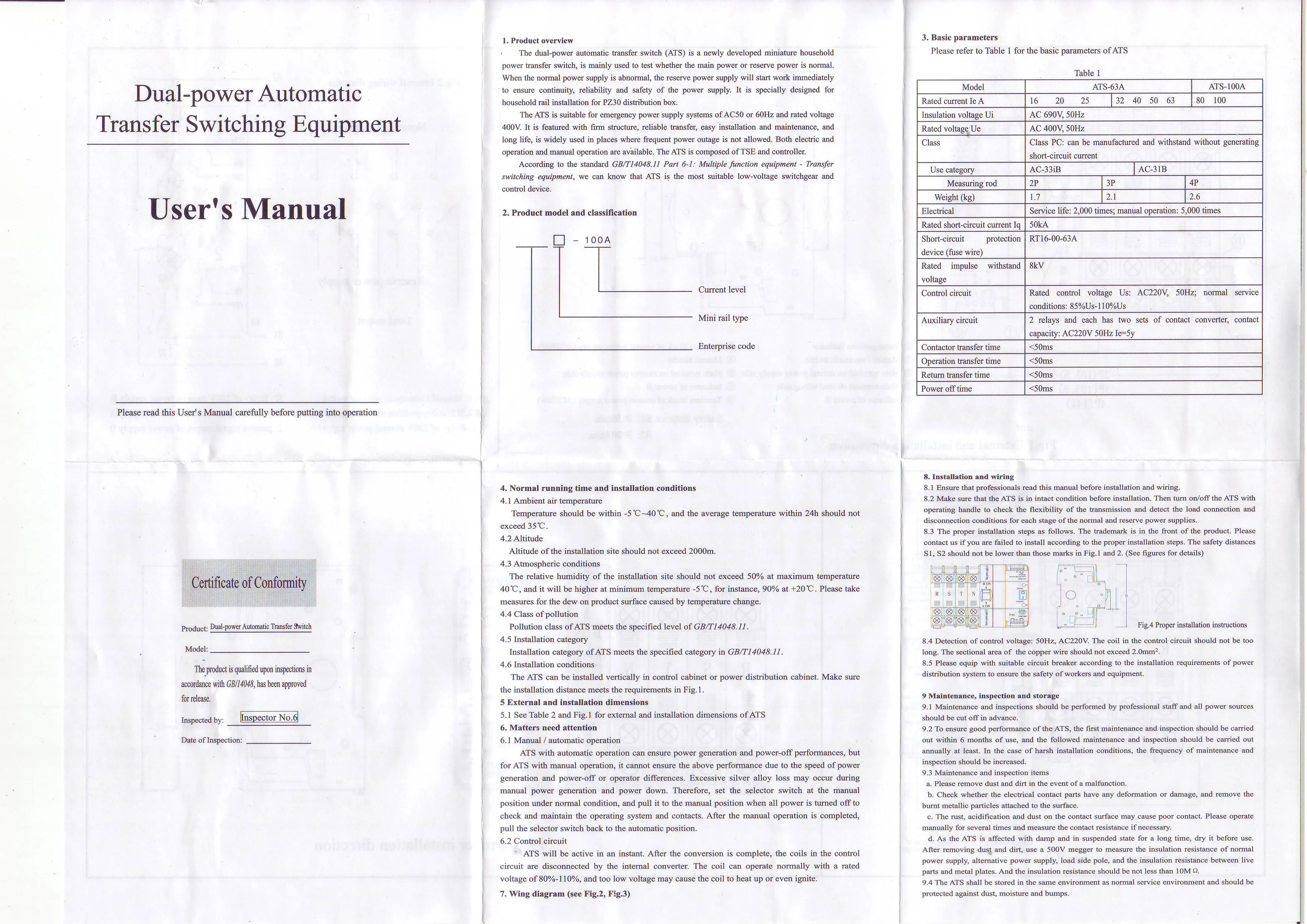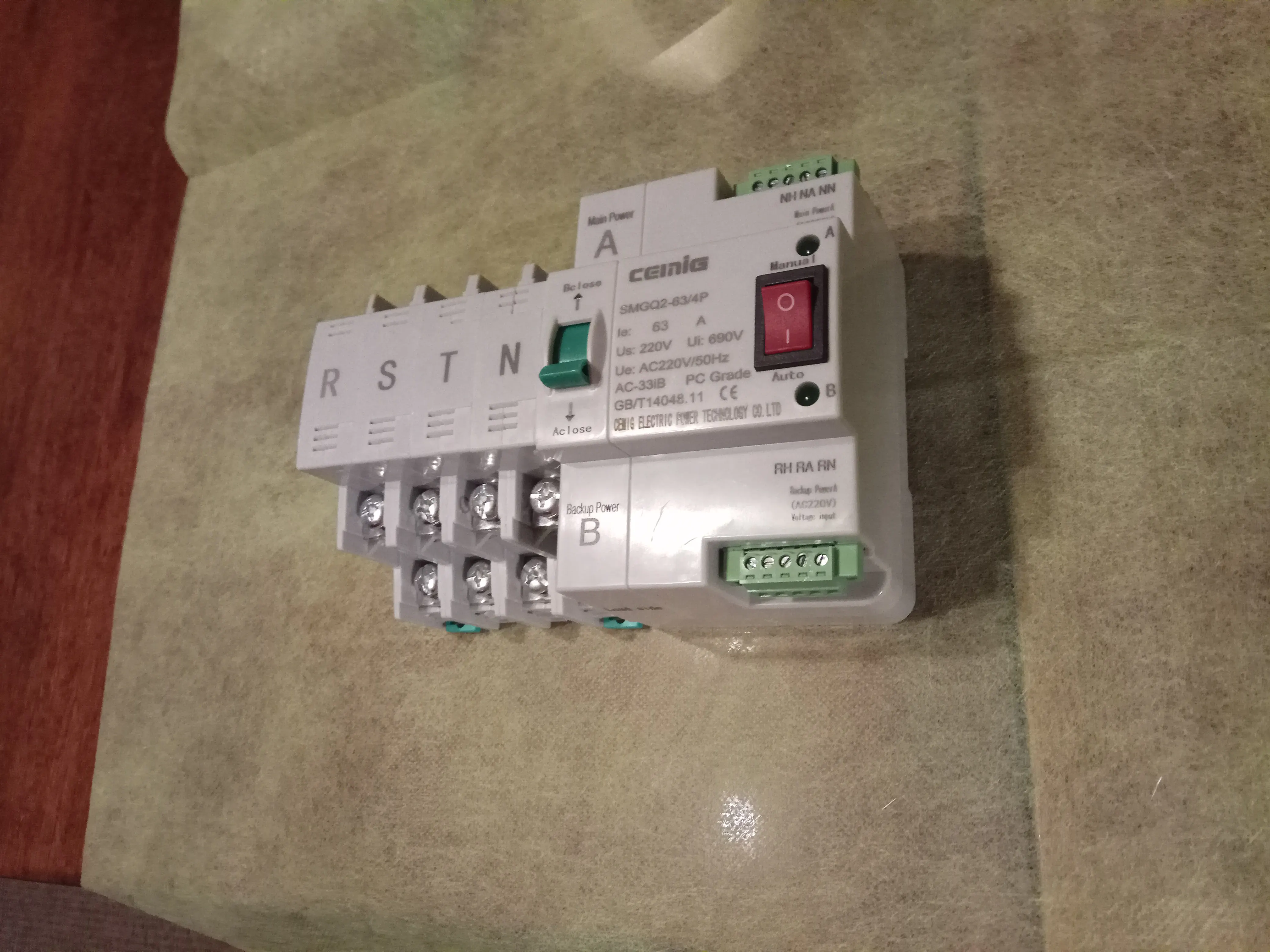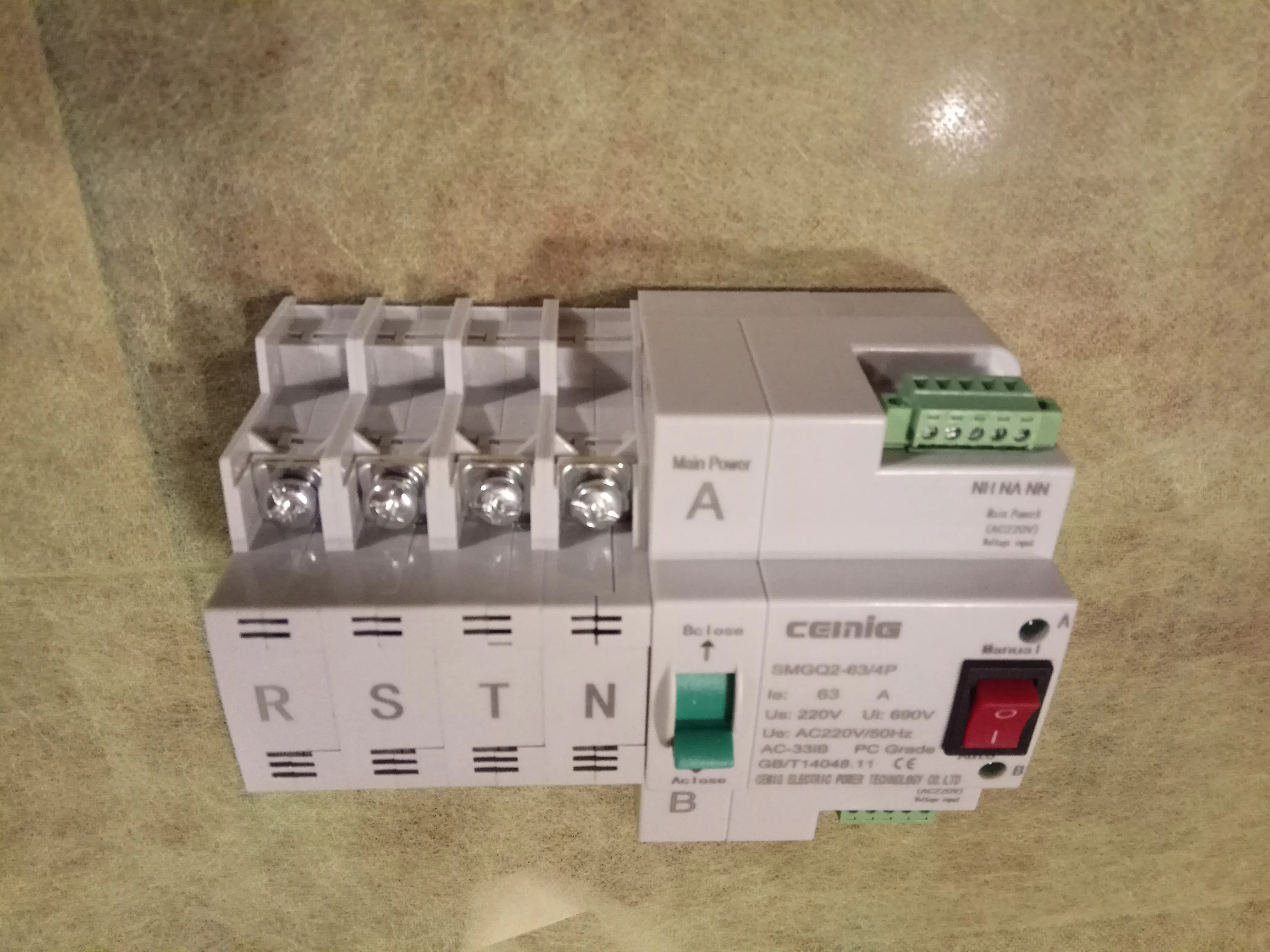 ATS Dual-Power Automatic Transfer Switch SMGQ2-63/4P Circuit Breaker MCB AC 400V 16A to 63A Household 35mm Rail Installation