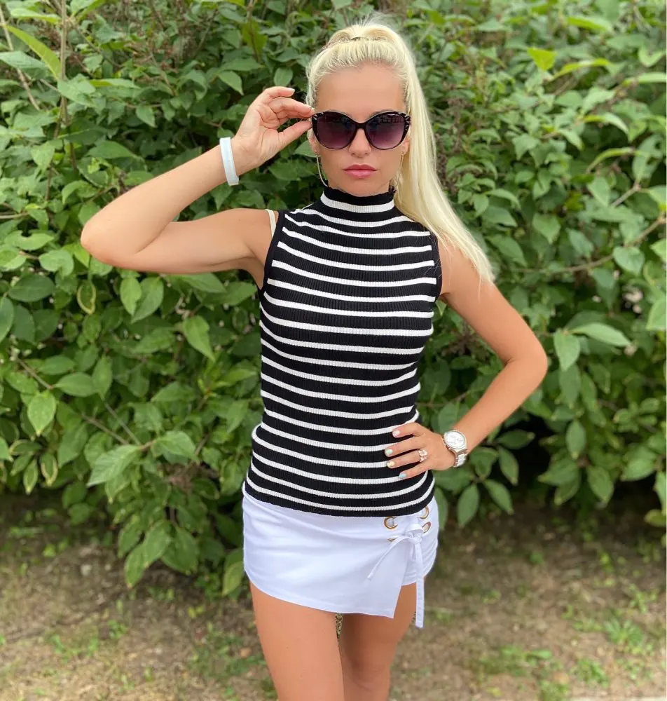Autumn SPRING stripe sleeveless Sweater Pullovers Women casual 2022 turtleneck sexy female basic Sweater knit Jumpers top