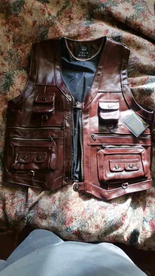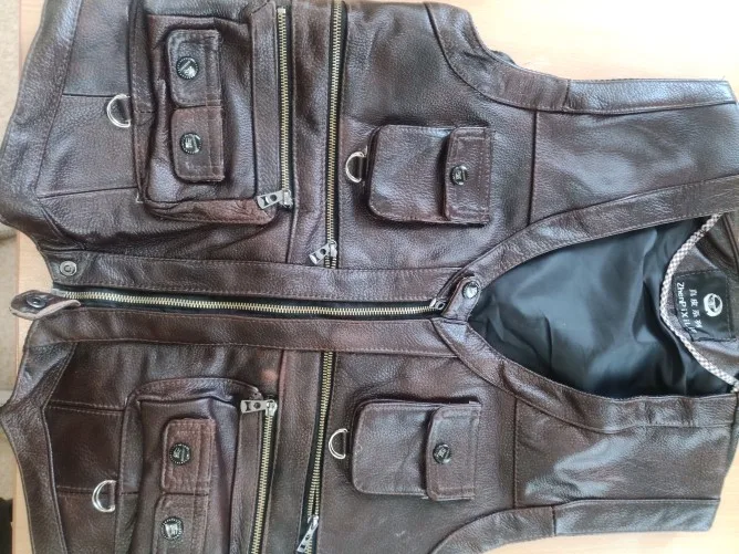 Autumn/winter 2022 head layer cowhide leather vest men vest Leather vest pocket