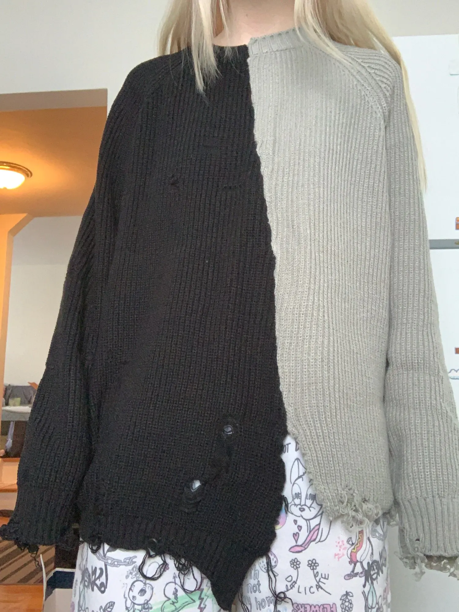 The sleeves aren’t longer than the body but it still makes a good and warm oversized sweater.