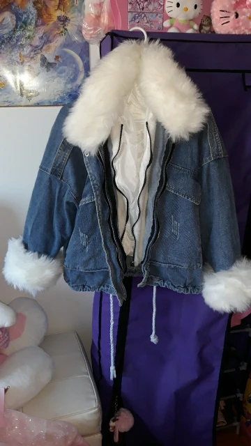 THIS JACKET"S AMAZING‼️ ON THE HOT FACTOR‼️ HAS DETACHABLE FLEECE LINING FOR EXTRA WARMTH AND STYLE.. FOR ADDED KOOLNESS ANOTHER JACKET CAN BE PURCHASED IN ANOTHER COLOR WITH FUR IN ANOTHER COLOR AND FUR CAN BE SWITCHED BETWEEN JACKET'S. I GO BUY BLACK JACKET WITH PINK FUR. SO I CAN ATTACH PINK FUR ON BLUE DENIM & WHITE.FUR ON BLACK DENIM‼️