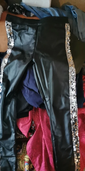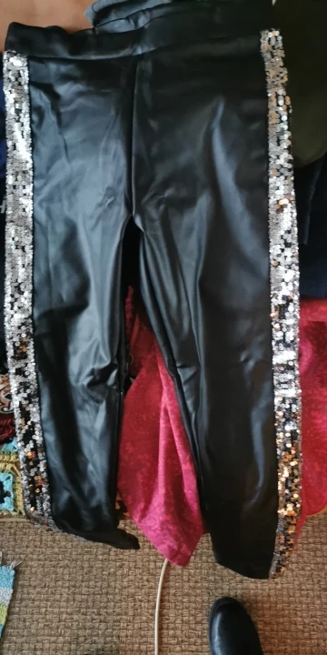 Babbytoro Women's Leggings Side Glitter Sequins PU Leather Pants Female High Waist Stretch Jeggings Plus 8XL 7XL S Gold Silver