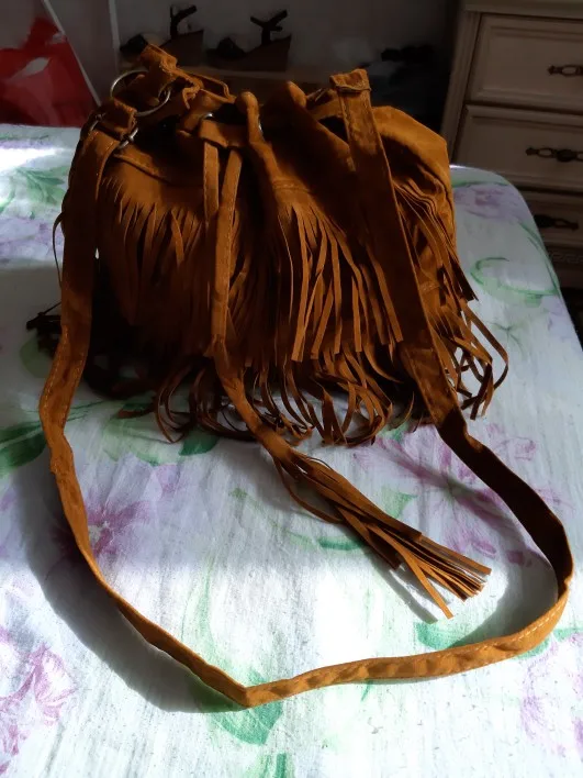bag women 2022 Fashion Solid Color Women Fringe Drawstring Suede Crossbody Shoulder Bucket Bag bags for women 2022 сумка женск