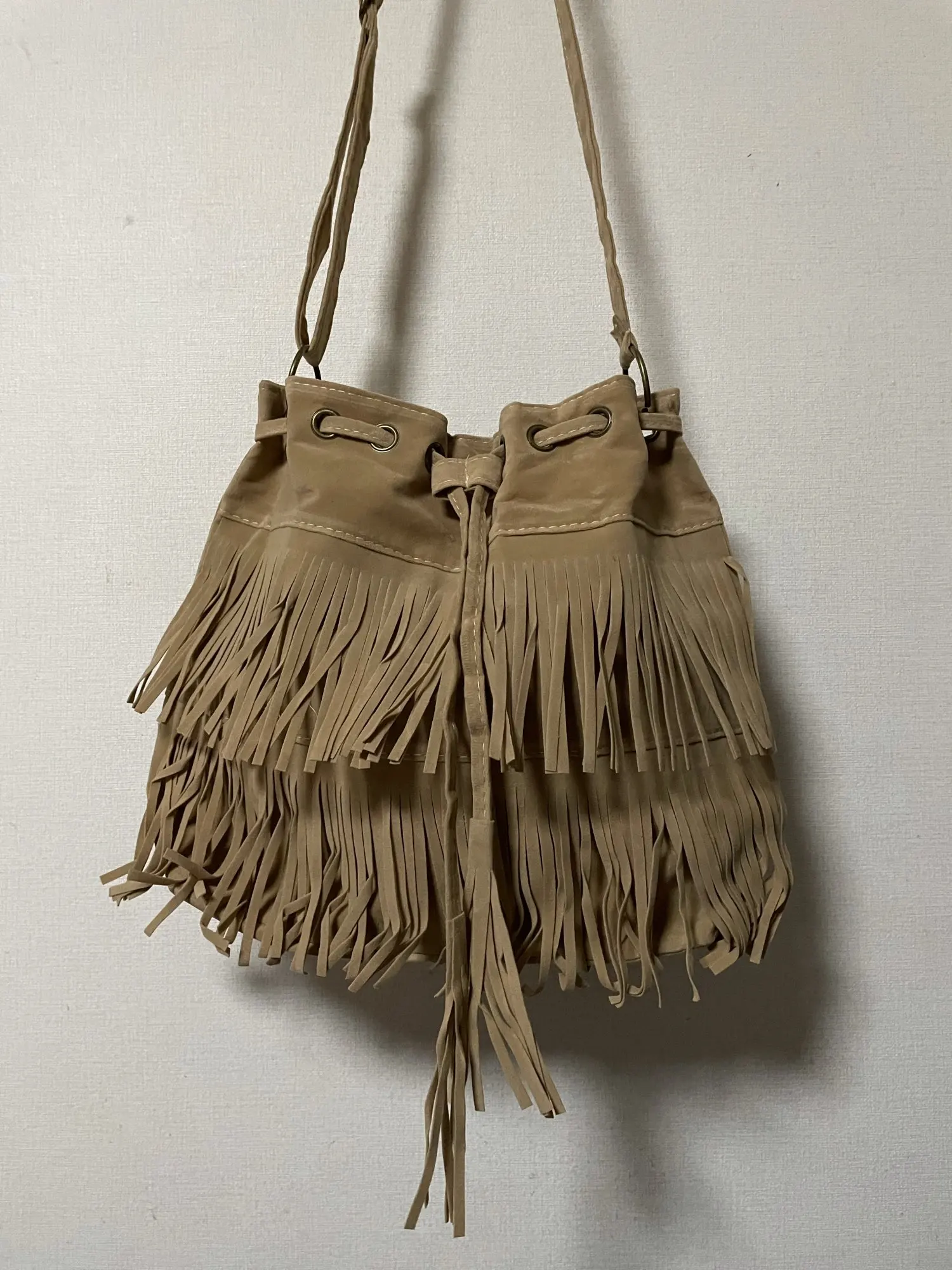 bag women 2022 handbag Women Solid Color Fringe Tassels Drawstring Crossbody Shoulder Suede Bucket Bags bags for women 2022