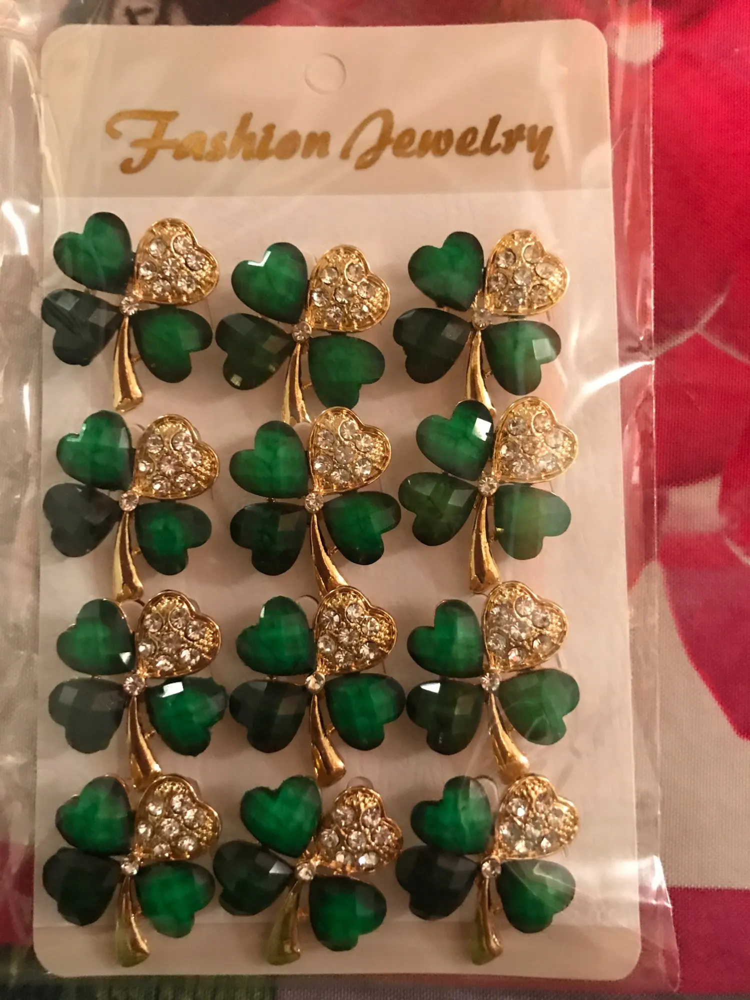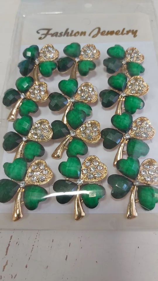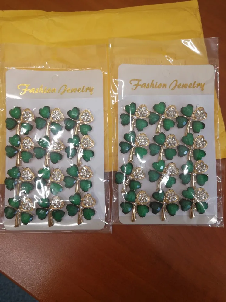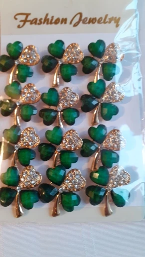 baiduqiandu New Arrival Set of 12 PCS Crystal Green Leaf Brooch Lapel Pins Clothing Jewelry Accessories