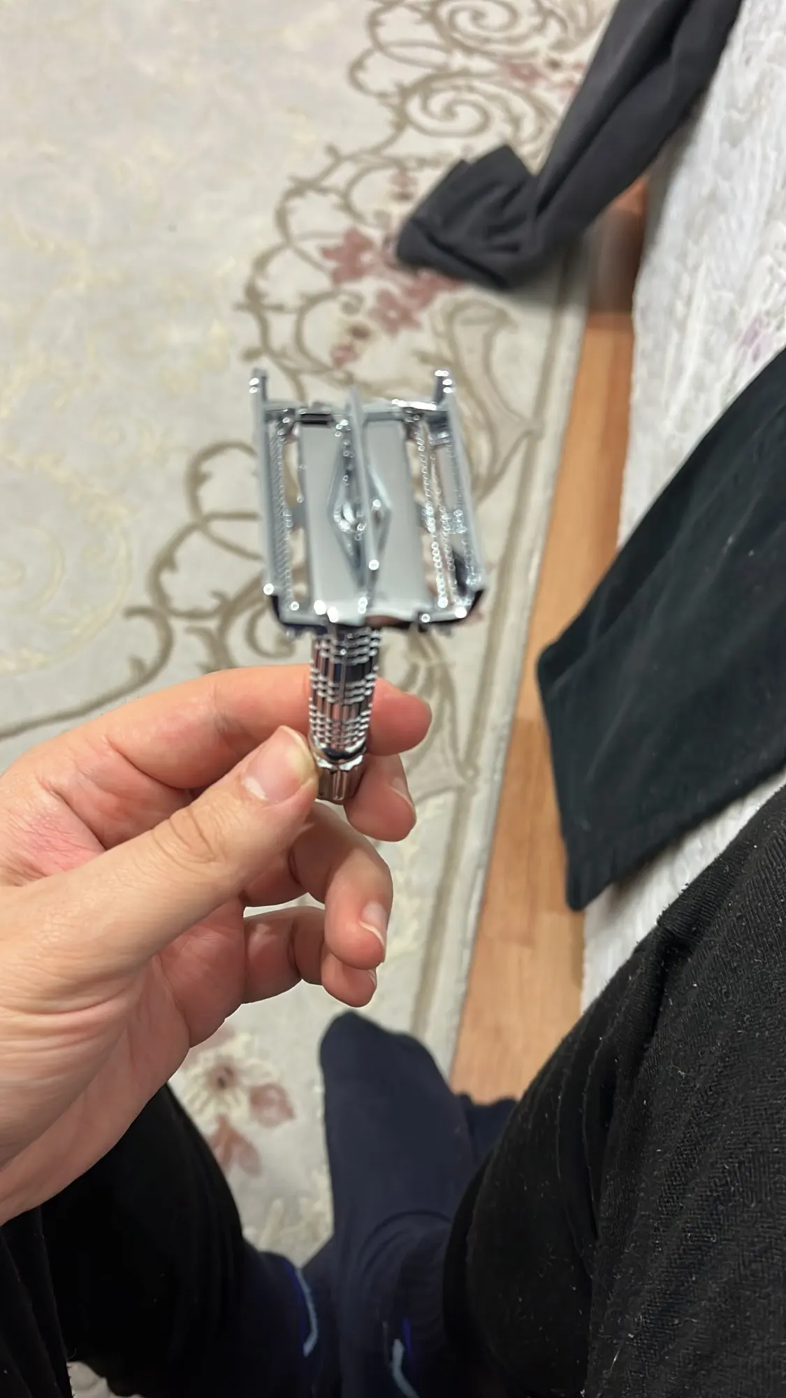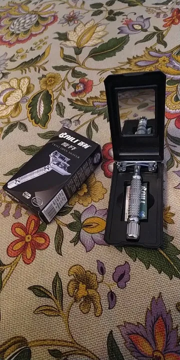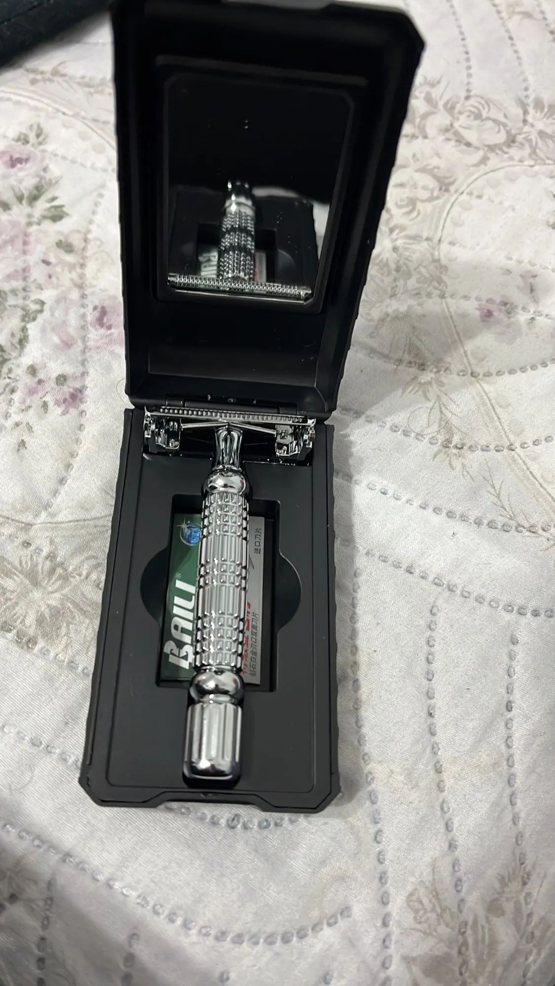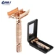 BAILI BD179 Barber Safety Blade Razor Shaver Double Edge Butterfly Twist Open T-Shaped Unisex +1 Blade 1 Travel Case with Mirror