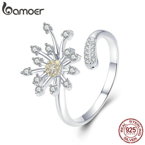 BAMOER Authentic 925 Sterling Silver Blooming Dandelion Love CZ Adjustable Rings for Women Wedding Engagement Jewelry SCR471