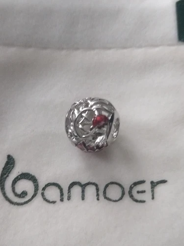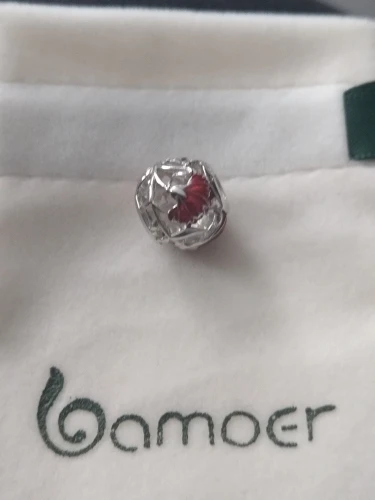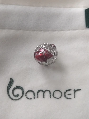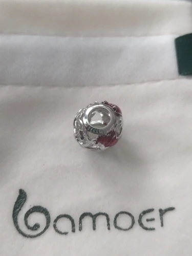 bamoer Mother's Flower Carnation Round Beads for Women Jewelry Making Openwork Red Enamel Petal Charm fit Bracelet Bangle BSC097