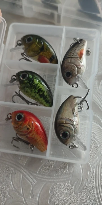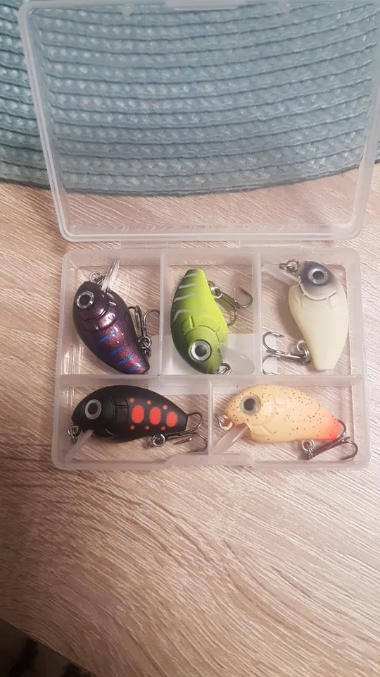 The item matches the description. Sharp hooks and rattles. Very small baits.