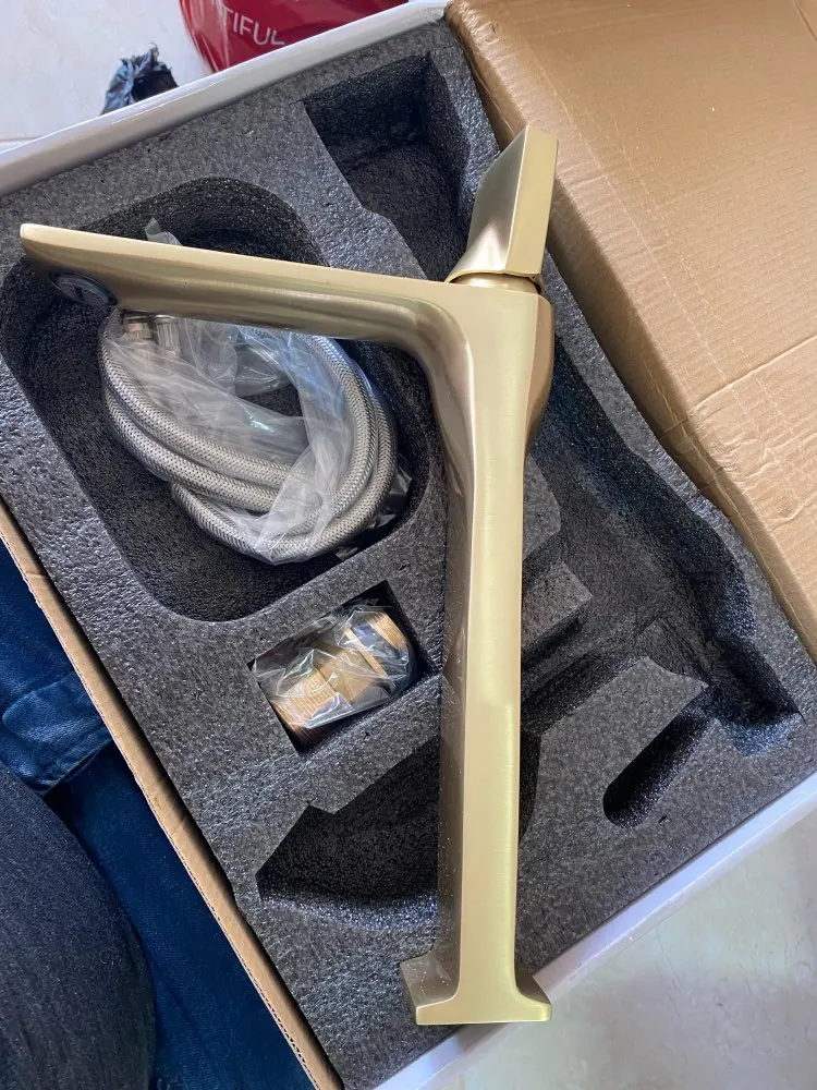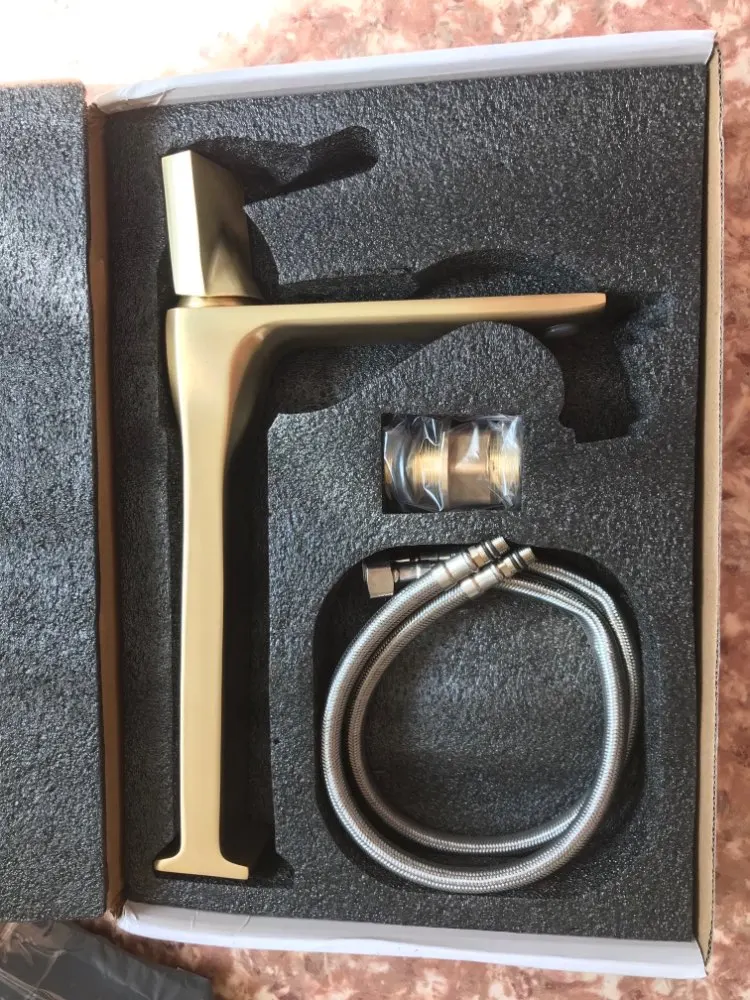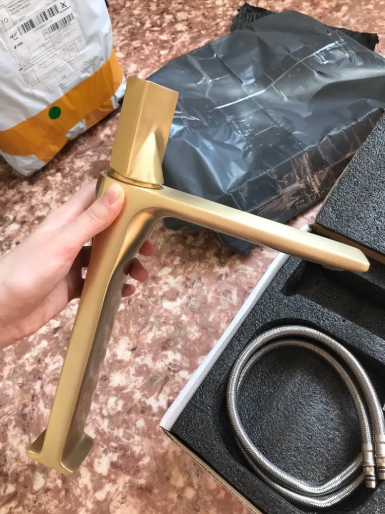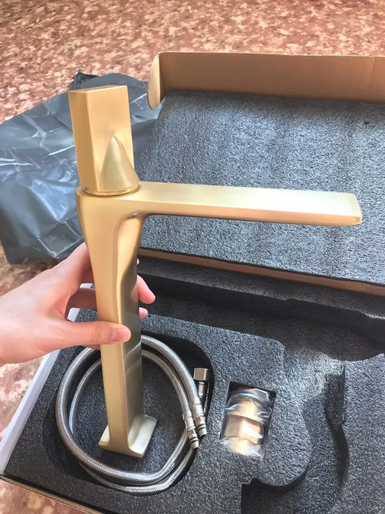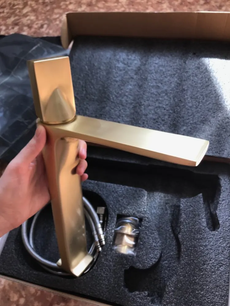 Bathroom Basin Faucets Brass Sink Mixer Tap Hot & Cold Deck Mounted Brushed Gold Rotating Lavatory Crane Tap Free Shipping