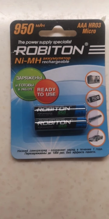 Battery мизинчиковый AAA robiton, 1.2 V, 950 mAh, NIMH, precharged 2 pieces per pack
