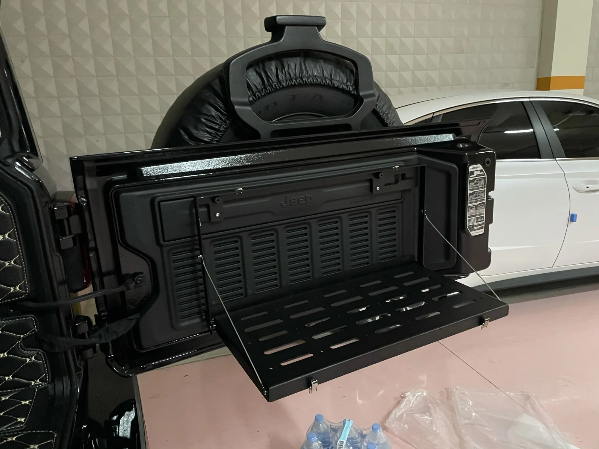 BAWA Multifunction Tailgate Table for Jeep Wrangler JL 2022 Tail Door Rack Storage Bracket Rear Bezel Rear Foldable Frame