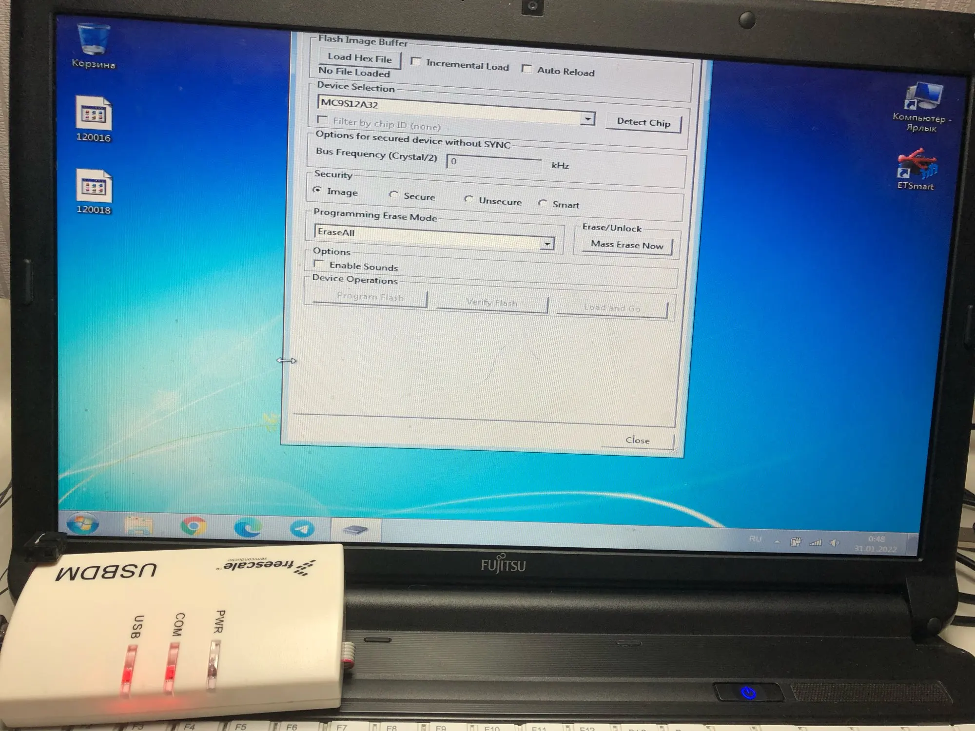 Programmer is beautiful. But you cannot read or write firware to the MC56F8035V with it. He sees the processor, but you can't do anything with it.