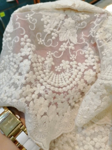 Beautiful 135cm Width 1M/lot 3D Embroidered Beige/White Lace Fabric Soft Net Fabric Sewing Curtain DIY Craft Accessory X645