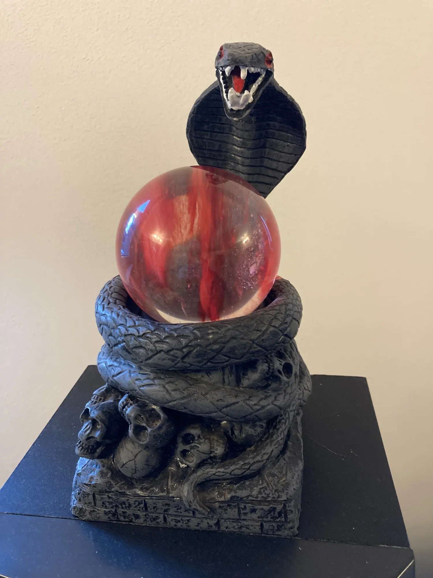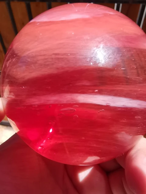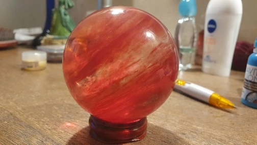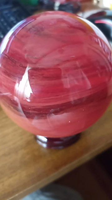 fast delivery, attentive seller, good price, I received the sphere in bubble wrap well packed with pedestal, no scratches everything is perfect, the sphere as in the photos is very beautiful, neither opaque nor transparent, we can see inside the red color mixes, I could even say that I prefer it to carnelian or red agate, the size is 10 centimeters more than agreed, big thanks to the seller.