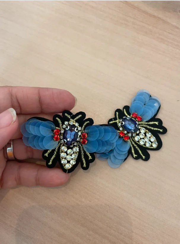 Bees sequins Rhinestones bead brooch patches applique sew on beading applique clothes shoes bags decoration patchfor clothing
